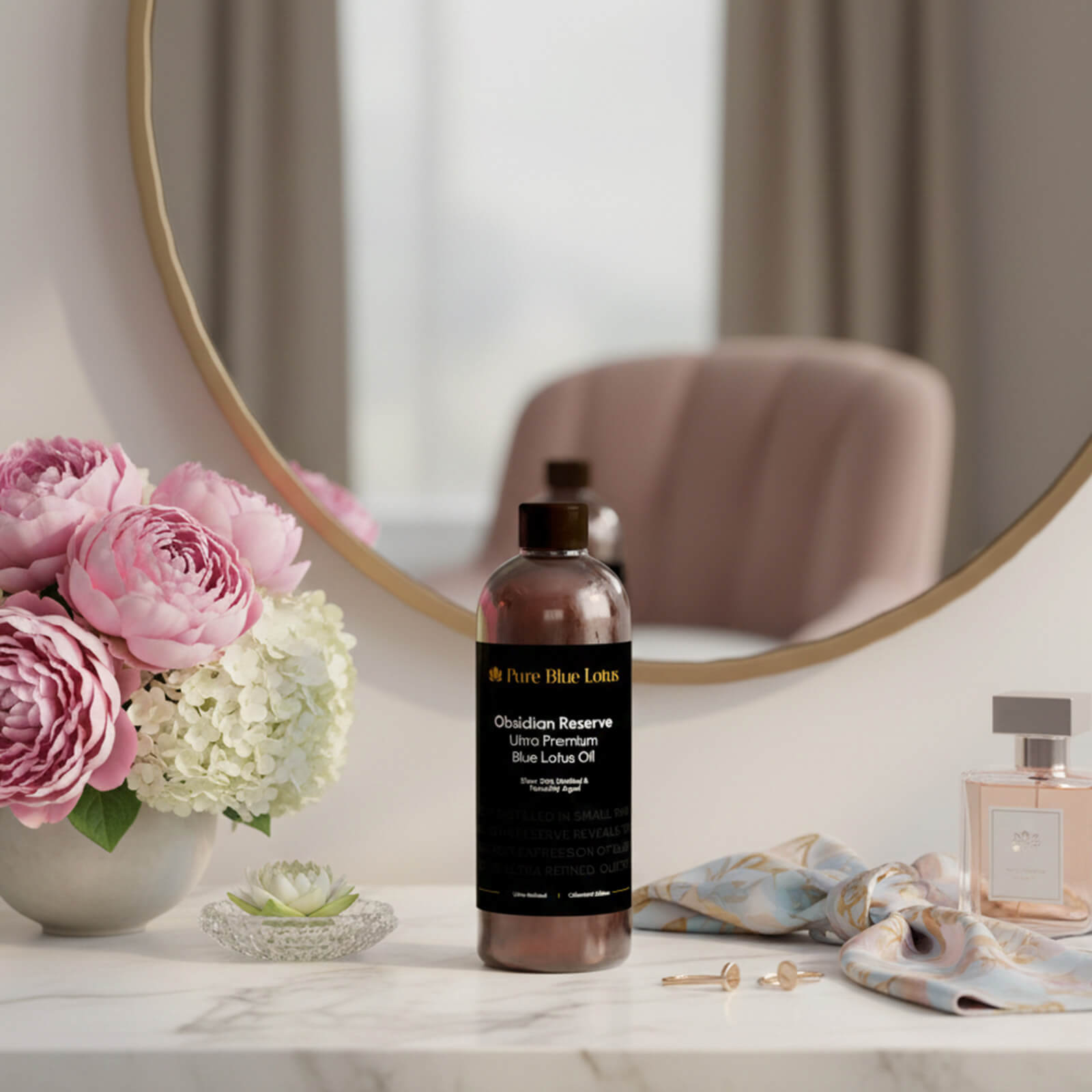 No fillers, no synthetic fragrance, no embellishment. Only slow distilled, ultra refined Blue Lotus Essential Oil, prepared as an obsidian toned ritual for the few who prefer their luxuries to whisper rather than shout.
